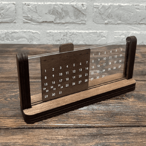 Деревянная основа обеспечивает прочность и устойчивость календаря, что делает его долговечным и надежным аксессуаром.