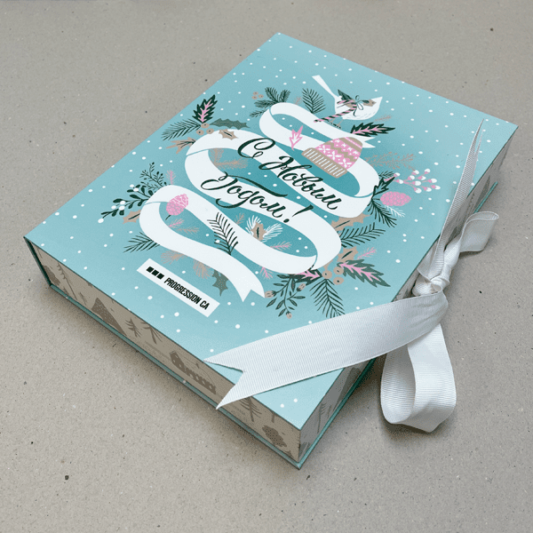 Коробки на лентах дешевле, чем коробки на магнитах, поэтому подходят для корпоративных заказов любого масштаба.